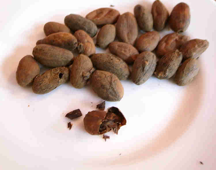 邱銘松先生說他有信心可以把容易栽種產量大的Forastero,種出具Criollo般的香氣來提升台灣產可可豆的經濟價值,真是令人驚訝啊! (關於可可豆的品種介紹請看此連結) 剖開成熟的豆莢,可以看到一顆顆紫褐色的可可豆,被香甜的白色汁液包覆著,農夫取出豆子在陽光下曝曬,脫出豆子的水分,變成巧克力色,到此為止,就是一般可可農莊所能夠做的一切了,所產出的晒乾豆子交給各巧克力公司處理是為基本可可原料。